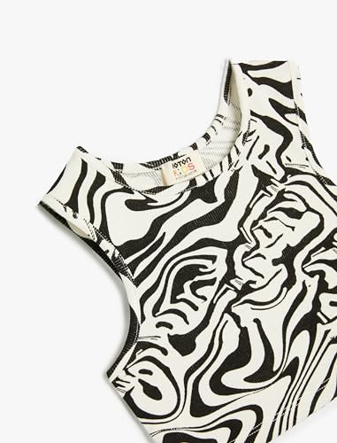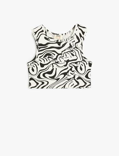 KOTON - توب كات كلاسيك قصير بحمالات عريضة بدون أكمام مضلع للبنات من كوتون (عبوة من قطعة واحدة)
