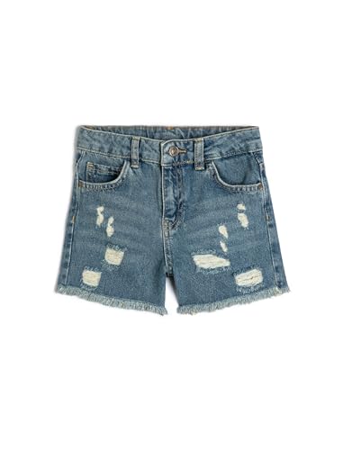 KOTON - شورت جينز للبنات من القطن بتفاصيل ممزقة من كوتون (عبوة من قطعة واحدة)