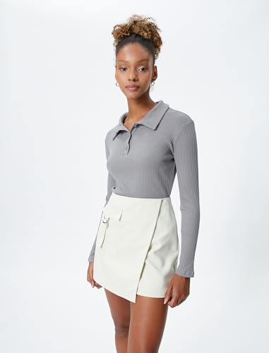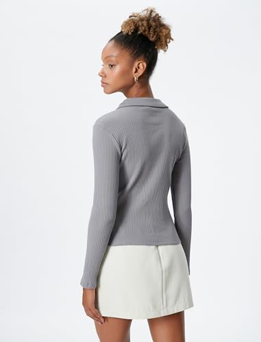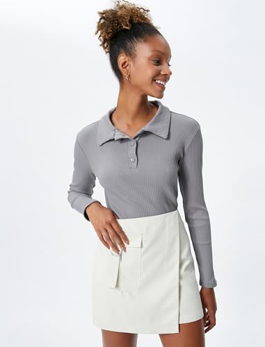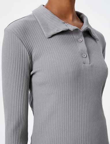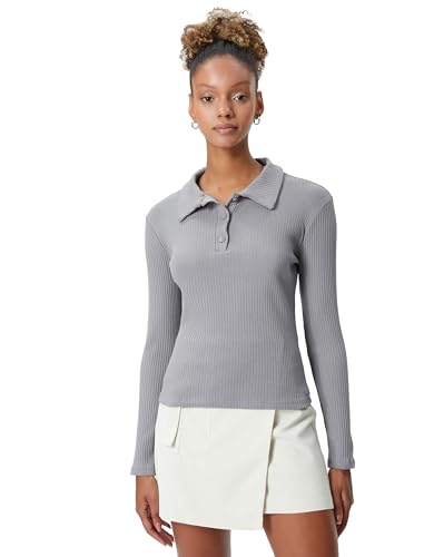 KOTON - تيشرت منسوج بأكمام طويلة وقصة ضيقة ورقبة بولو بأزرار للبنات من كوتون (عبوة من قطعة واحدة)