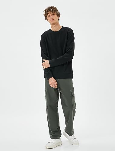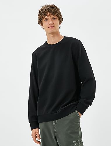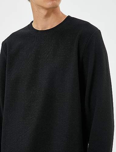 KOTON - KOTON mens Basic Textured Crew Neck Long-Sleeves Sweatshirt