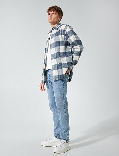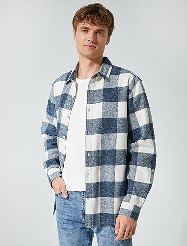 KOTON - KOTON mens Classic Neck Long Sleeve Check Plaid Shirt
