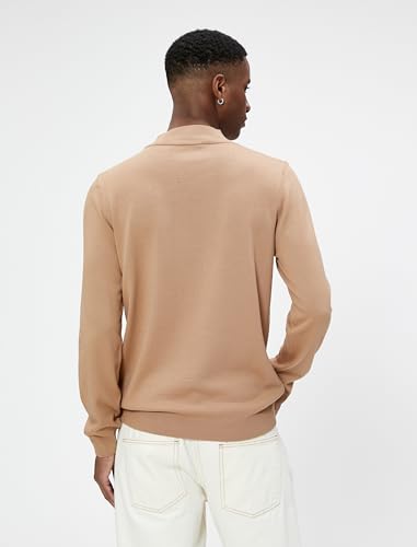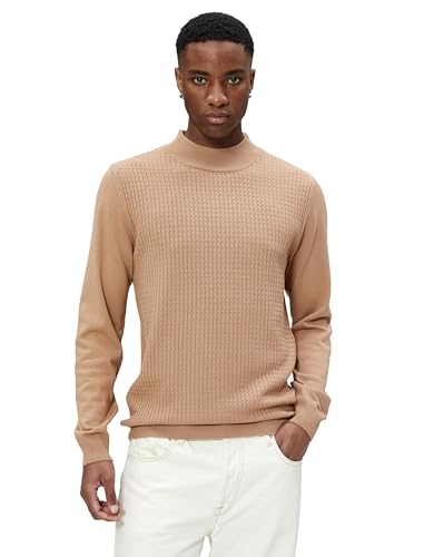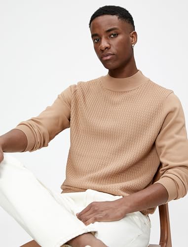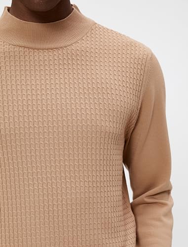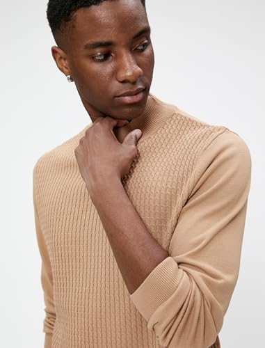 KOTON - كنزة بولوفر من كوتون بنصف رقبة مدورة للرجال، تصميم ضيق بأكمام طويلة، لون بيج، مقاس وسط