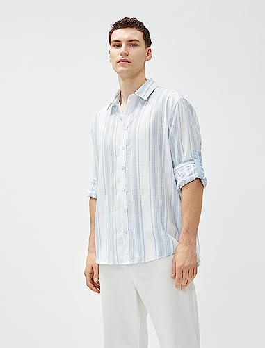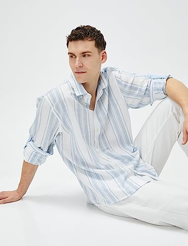 KOTON - قميص كلاسيك رجالي بأكمام طويلة وياقة، بأزرار للإغلاق من كوتون، (قطعة واحدة)