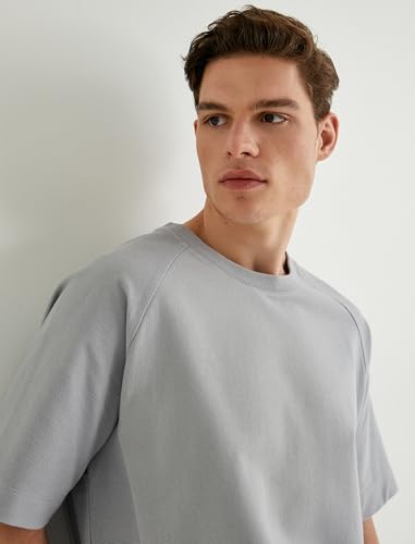 KOTON - تيشرت برقبة دائرية ضيقة وتفاصيل خياطة للرجال من كوتون