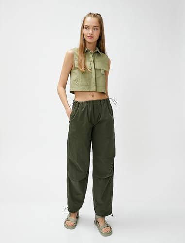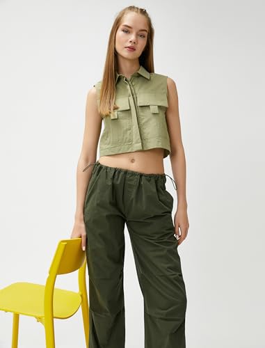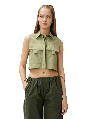 KOTON - بلوزة قصيرة بدون أكمام بجيوب كبيرة للنساء من كوتون