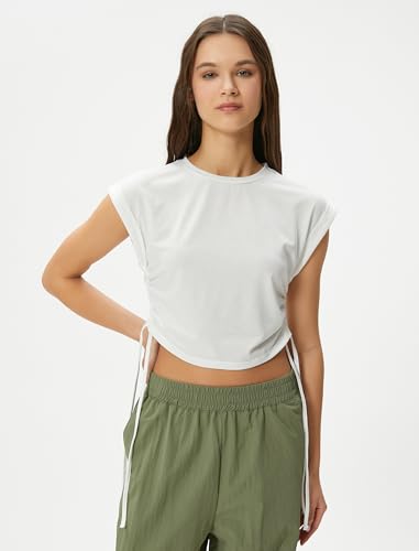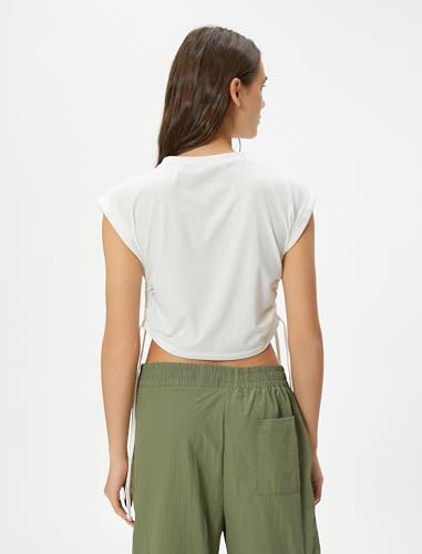 KOTON - توب كات قصير بدون أكمام برقبة دائرية ضيقة وربطة جانبية للنساء من كوتون