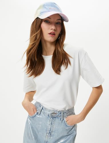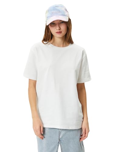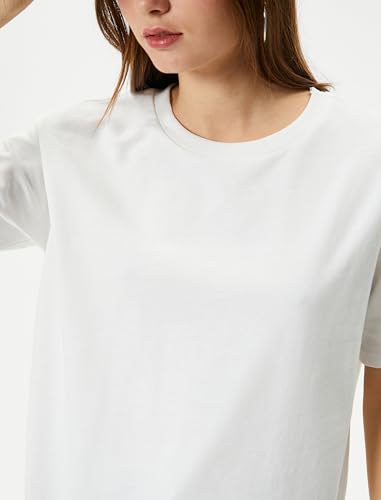 KOTON - تيشرت بيسيك للنساء من كوتون مصنوع مزيج القطن برقبة دائرية ضيقة وأكمام قصيرة لون سادة عبوة 1 قطعة