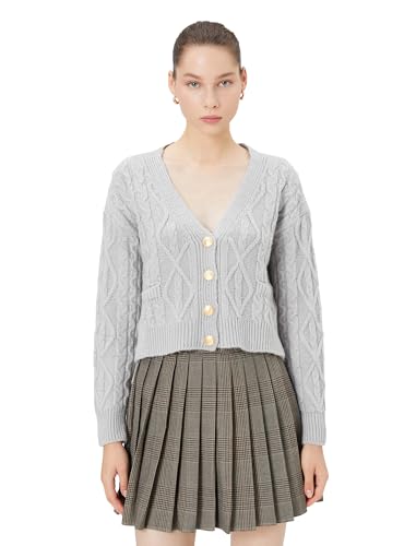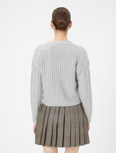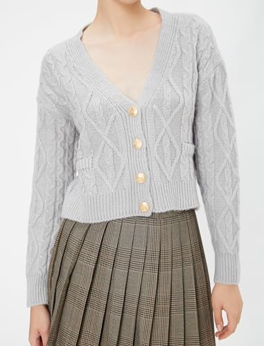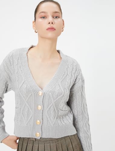 KOTON - KOTON womens Cable-Knit V Neck Button Detail Long Sleeve Cardigans