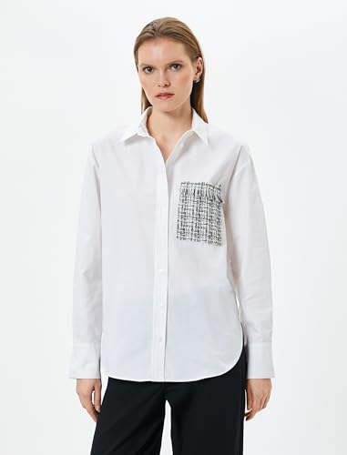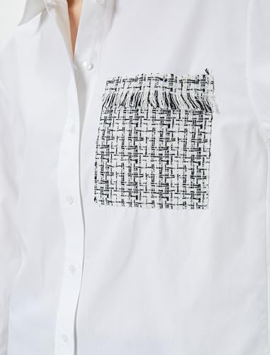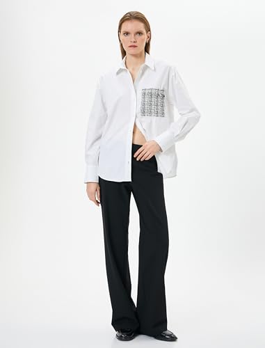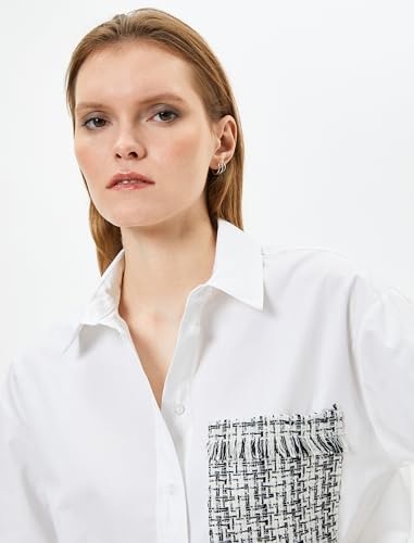 KOTON - تيشرت قصير من قطن بأزرار وأكمام طويلة وأستك عند الخصر للنساء من كوتون، قطعة واحدة