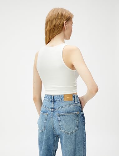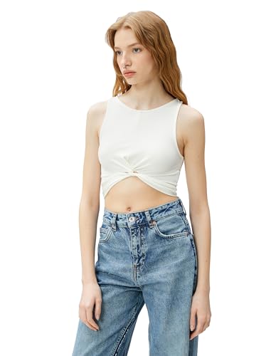 KOTON - KOTON womens Crew Neck Ribbed Knotted Crop Tanktop