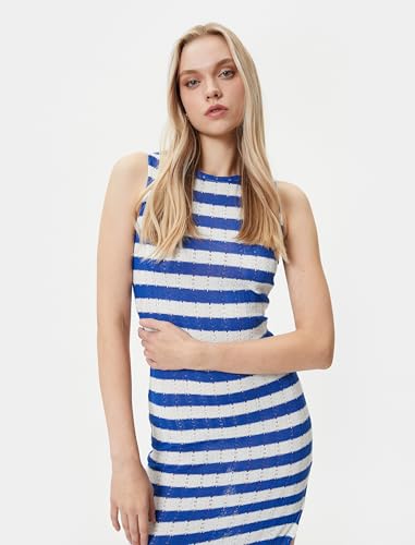KOTON - KOTON womens Crew Neck Slit Midi Dress