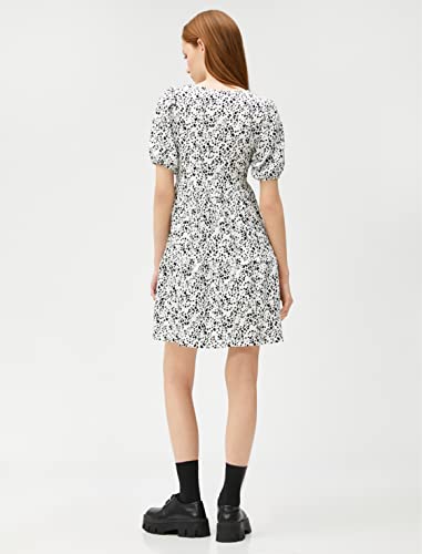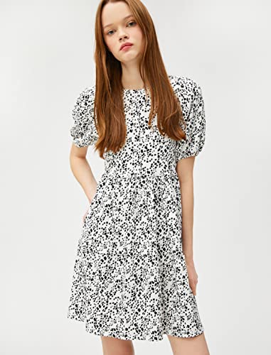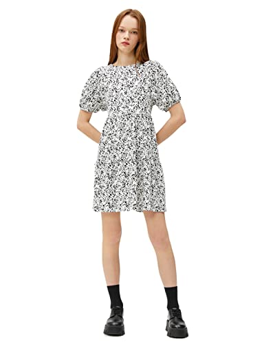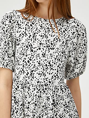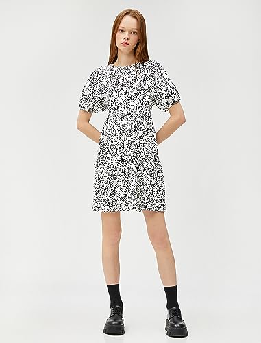 KOTON - KOTON womens Crew Neck Voluminous Patterned Puff Sleeve Mini Dress