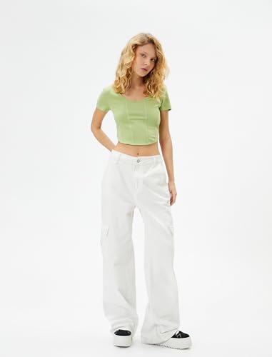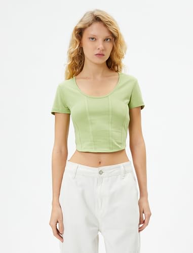 KOTON - KOTON womens Crop Corset Look Slim Fit Short Sleeve U Neck Tshirt