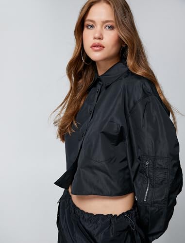 KOTON - KOTON womens Crop Long Sleeve Pocket Detail Elastic Cuffs Shirt