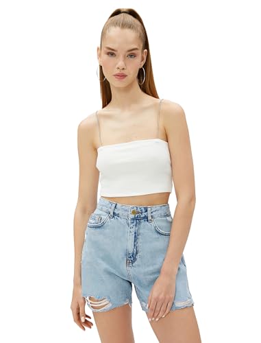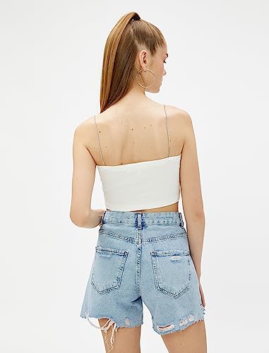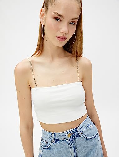 KOTON - KOTON womens Glitz Stone Strappy Ribbed Crop Tanktop