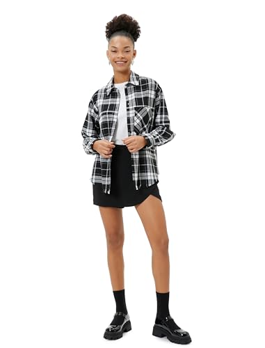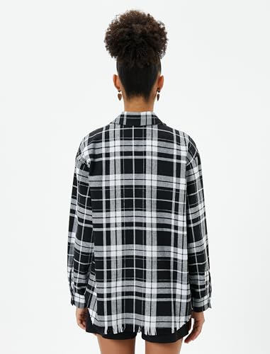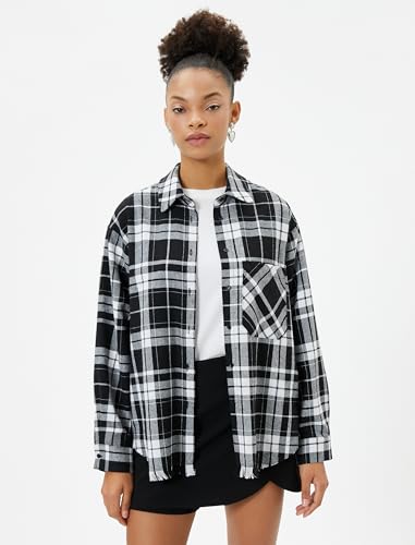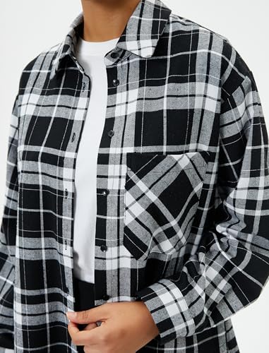 KOTON - KOTON womens Plaid Pockets Soft Textured Long Sleeve Shirt