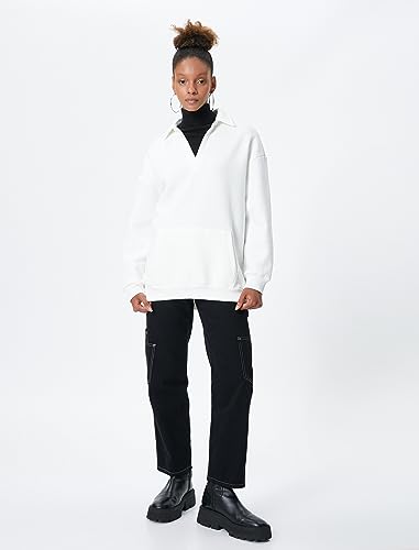 KOTON - KOTON womens Polo Neck Kangaroo Pocket Detail Long Sleeve Sweatshirt Modern