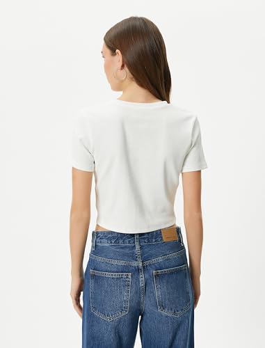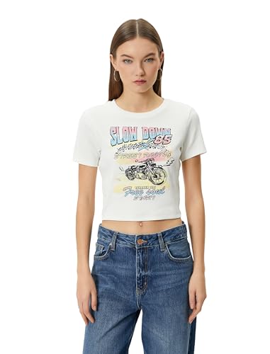 KOTON - تيشرت قصير مطبوع باكمام قصيرة ورقبة دائرية ضيقة من القطن