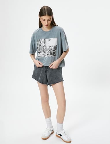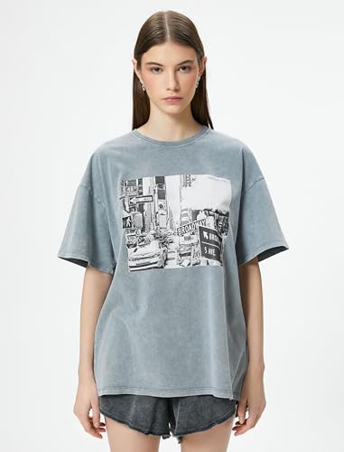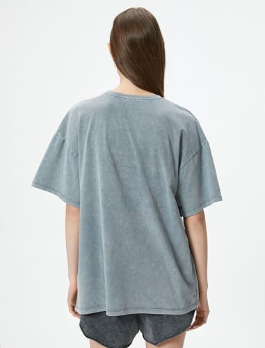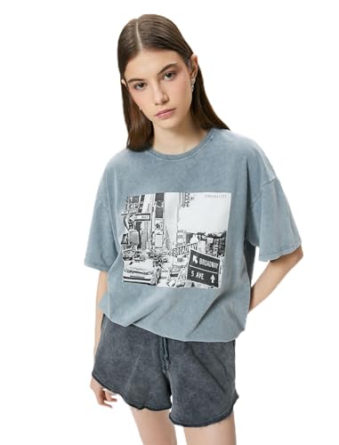 KOTON - KOTON womens Printed Washed Effect Short Sleeve Crew Neck Relax Cut Tshirt