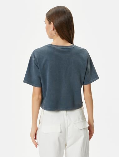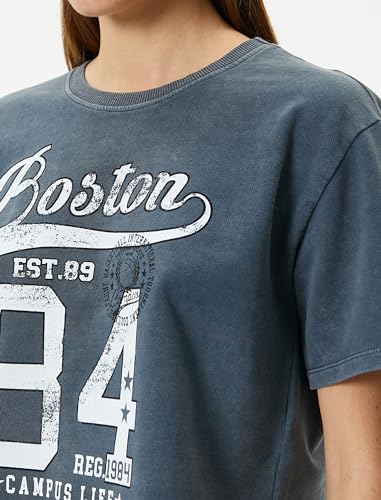 KOTON - KOTON womens Varsity Crop Relax Fit Washed Effect Tshirt
