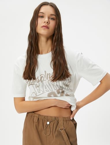 KOTON - تيشرت قطن كلاسيكي بأكمام قصيرة ورقبة دائرية ضيقة للنساء من كوتون (عبوة من قطعة واحدة)