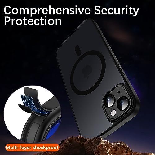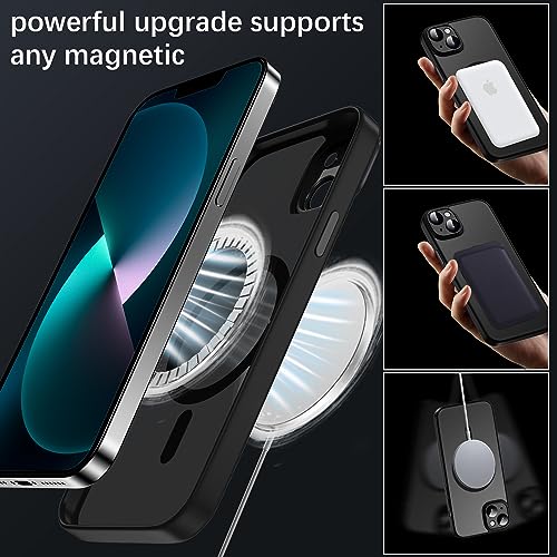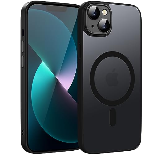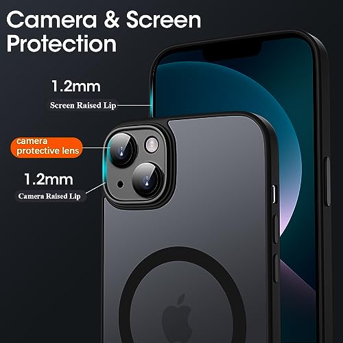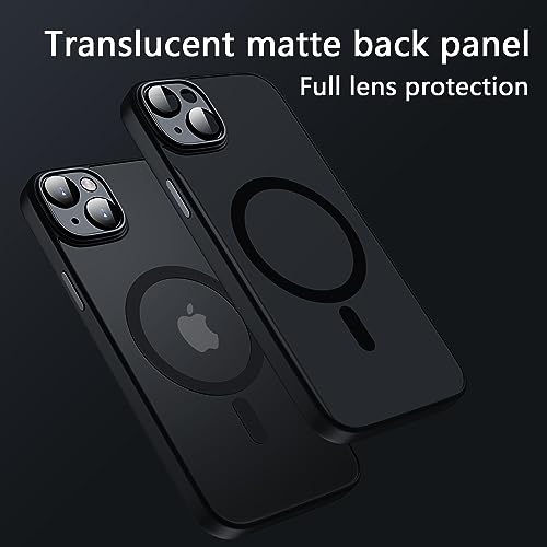 KPPIT - جراب حماية مغناطيسي بتصميم شفاف ونحيف مضاد للصدمات بلمسة نهائية مطفية لموبايل آيفون 13 6.1 بوصة متوافق مع شاحن ماج سيف من كيه ببيت، بحماية كاملة لعدسات الكاميرا، أسود