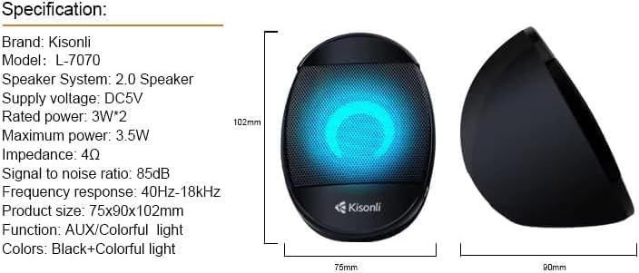 Generic - مكبر صوت محمول نظام صوتي بقناتين 2.0 - USB بإضاءة ملونة متغيرة الاستخدامات L-7070