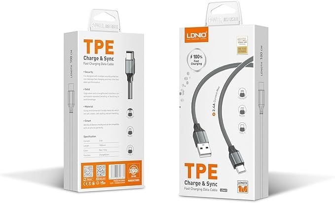 Generic - كابل بيانات للشحن السريع بقوة 2.4 أمبير من ل.د.ن..ي.، طول 1 متر، لون رمادي