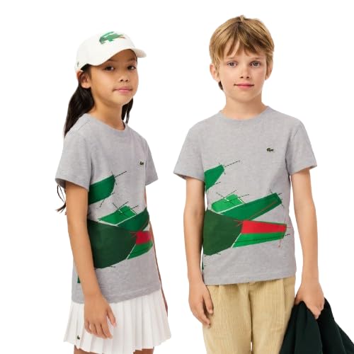 Lacoste - تيشرت عصري بقصة واسعة مزين بطباعة شعار التمساح للأطفال من الجنسين من لاكوست