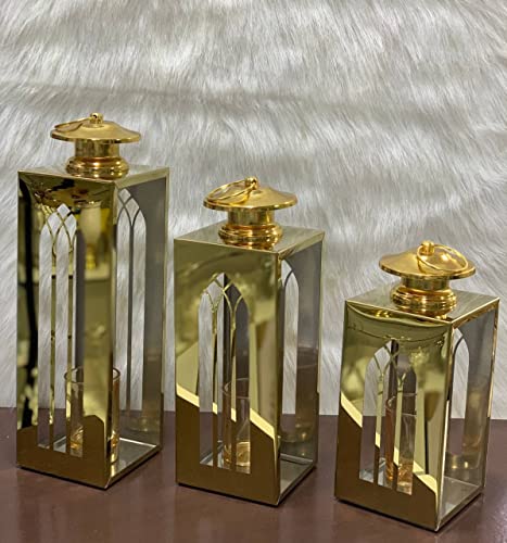 360 Degrees - طقم فانوس ذهبي بأحجام مختلفة للديكور فائق الأناقة ✯ مادة معدنية