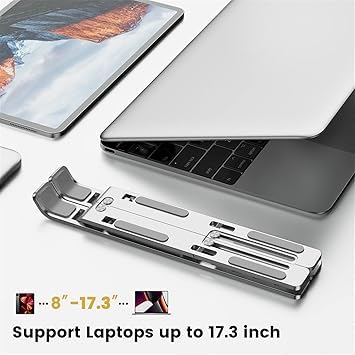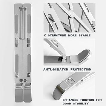 Generic - حامل لابتوب مصنوع من خليط معدني الالومنيوم للمكتب سهل الحمل جيد التهوية ومشتت حراري مطاط غير قابل للانزلاق للطي وقابل للتعديل بـ 6 مستويات