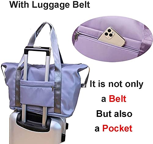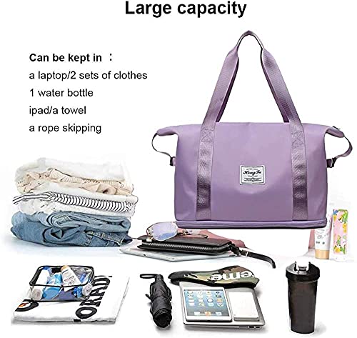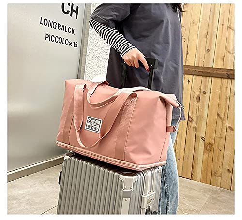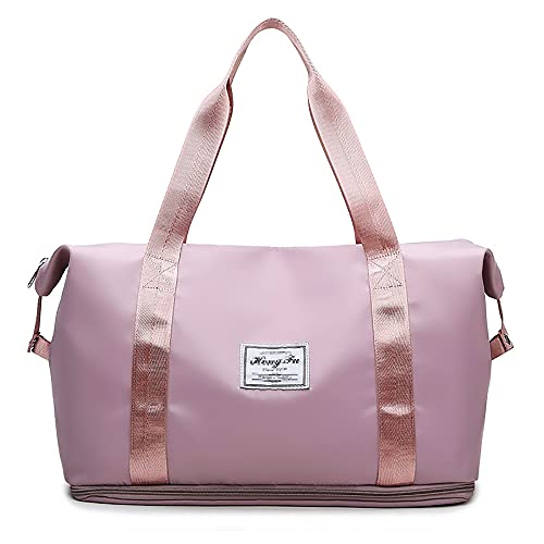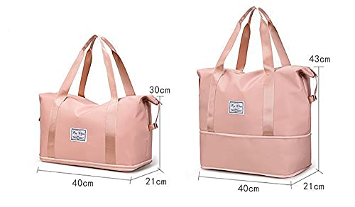 通用 - شنطة سفر قابلة للطي بسعة كبيرة لعطلة نهاية الاسبوع بمساحة للتوسيع وفاصل للعناصر الجافة والمبللة دفل رياضية زهري