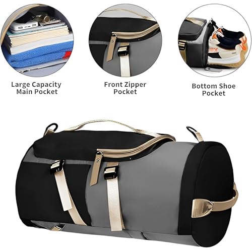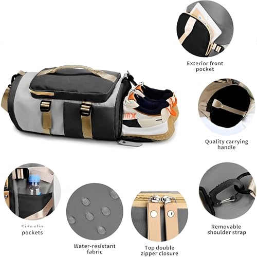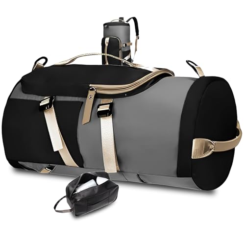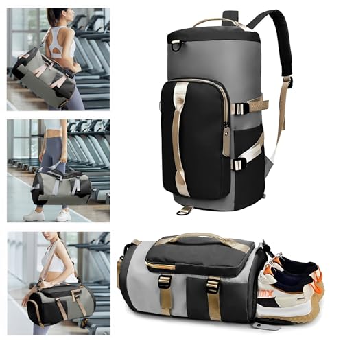 AUQO - شنطة رياضية كبيرة السعة للرجال والنساء 3 في 1 من القماش الخشن مع جيب للاحذية وجيب مبلل، شنطة صغيرة متعددة الاستخدامات للسفر واللياقة البدنية والرياضة في الهواء الطلق (رمادي واسود)، رمادي واسود، شنطة