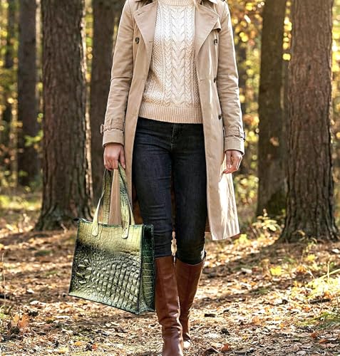 Generic - شنطة جلد طبيعي هاند ميد كبيرة موديل التمساح