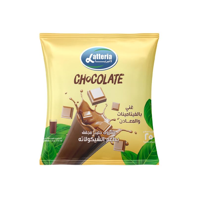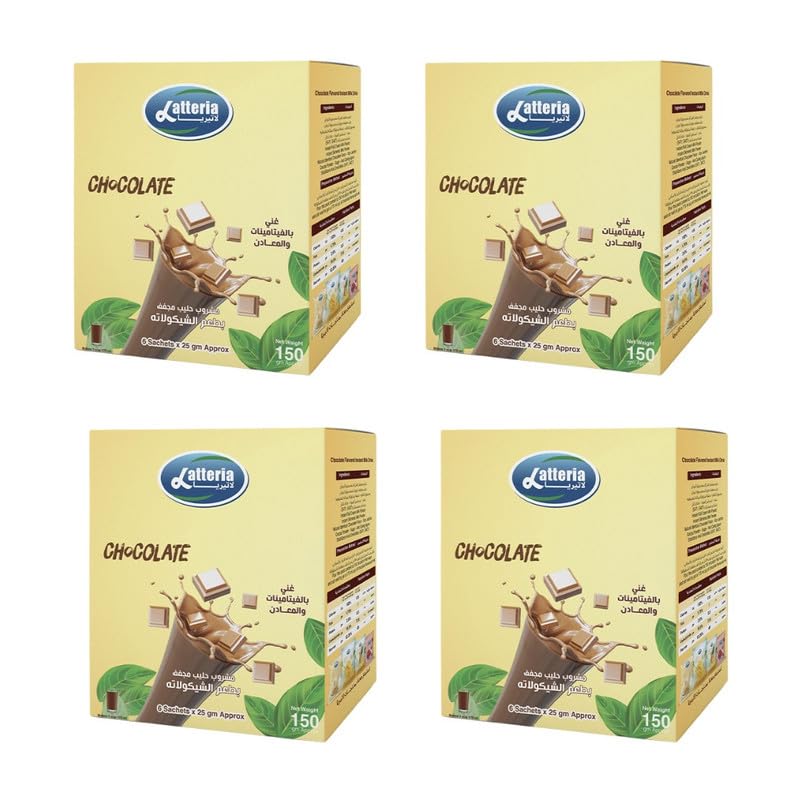 LATTERIA - مشروب حليب محلى بنكهة الشوكولاتة من لاتيريا، 4 عبوات، كل عبوة 25 جرامًا