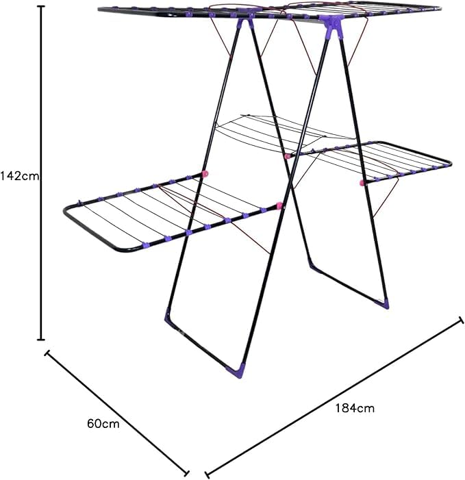 • ✅ تصميم عملي بدورين: يوفّر مساحة كبيرة لتجفيف الملابس بشكل مرتب وبدون تداخل.