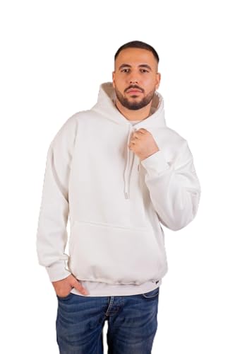 LAVOGUE - سويت شيرت بغطاء للرأس بلون ابيض سادة للنساء من لافوج