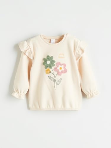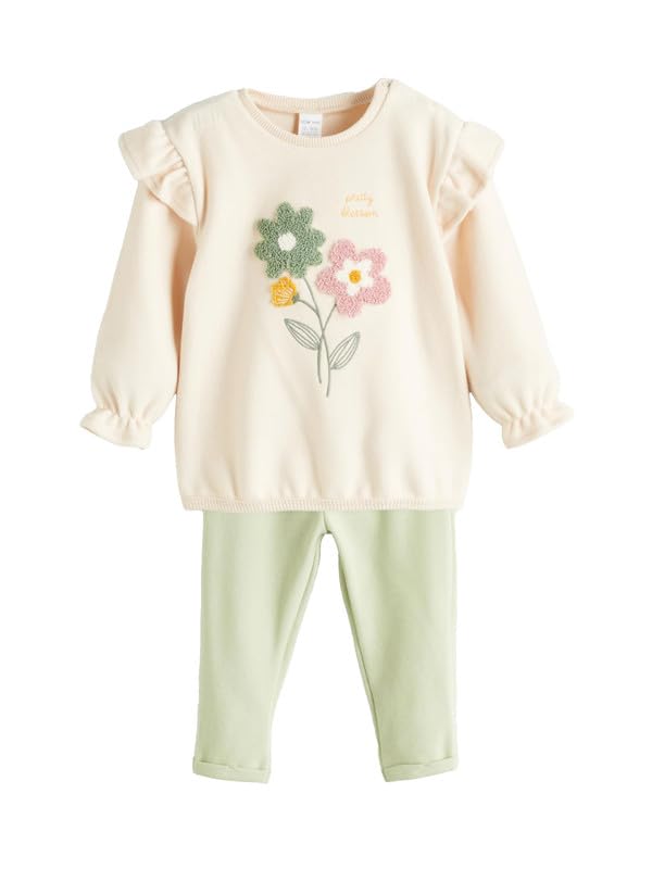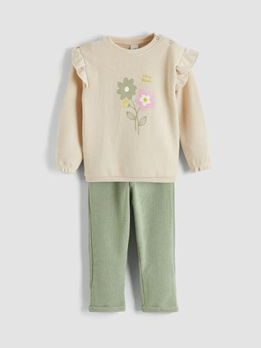 LC WAIKIKI - طقم مكون من قطعتين للبنات الرضع مكون من سويت شيرت برقبة دائرية بنقشة الزهور مع بنطلون لجينجز من ال سي وايكيكي