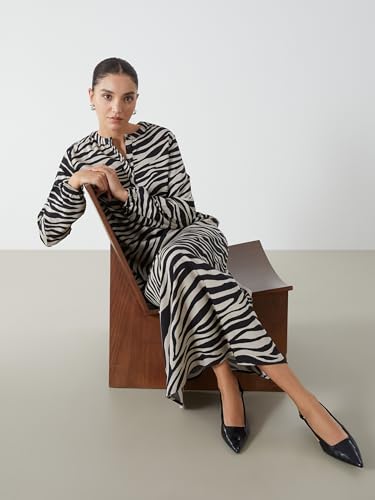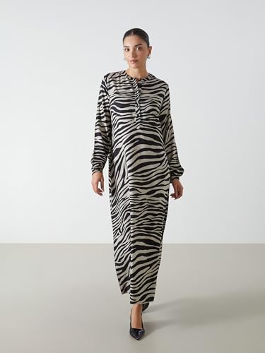 LC WAIKIKI - فستان مزين بنقشة الحمار الوحشي برقبة دائرية ضيقة للنساء من ال سي وايكيكي