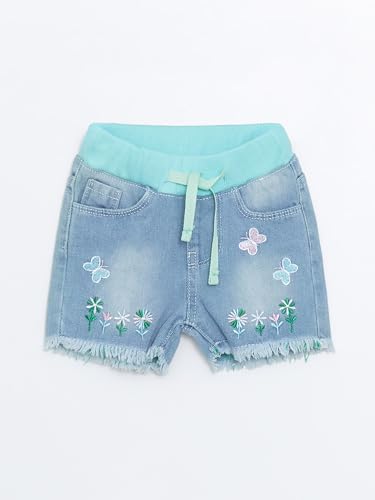 LC WAIKIKI - شورت جينز مطرز باستك عند الخصر للبنات الصغيرات من ال سي وايكيكي