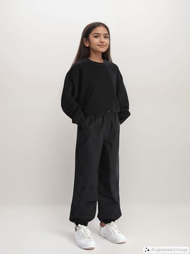 LC WAIKIKI - LC واكيكي بنطلون رياضي بخصر مطاطي للبنات W44823Z4-Cvl-1 7-8 سنوات، اسود