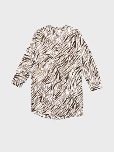 LC WAIKIKI - فستان منقوش بأكمام طويلة وياقة جرانداد من قماش البوبلين للنساء من ال سي وايكيكي