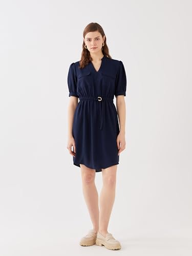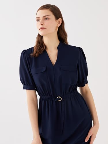 LC WAIKIKI - LC واكيكي فستان باكمام قصيرة ورقبة هينلي للنساء S3Aq53Z8-Dwp-1 M كحلي