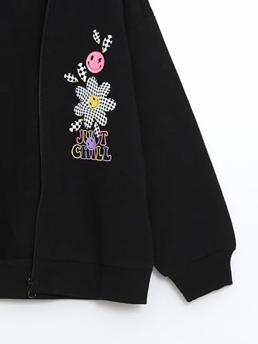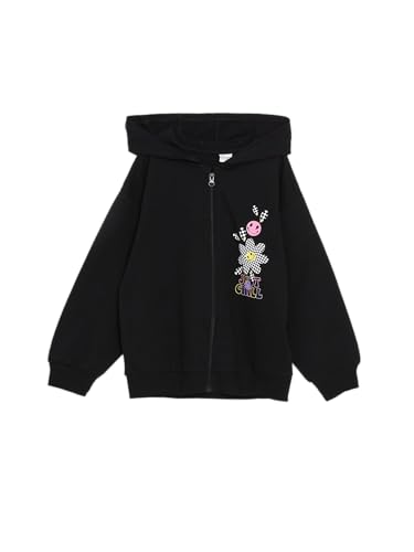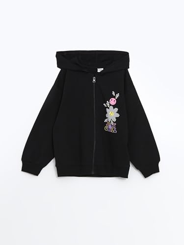 LC WAIKIKI - سويت شيرت مطبوع بغطاء للرأس وسوستة وأكمام طويلة للبنات من ال سي وايكيكي
