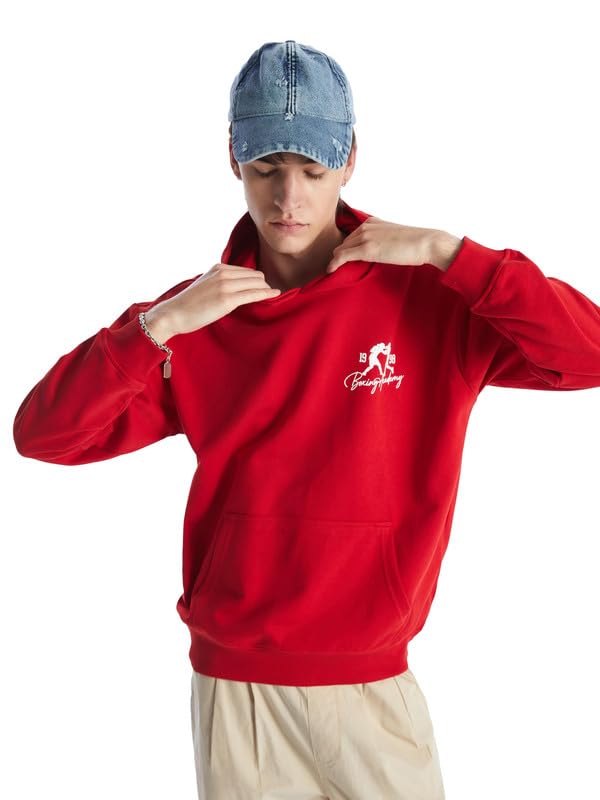 LC WAIKIKI - سويت شيرت سميك بغطاء للرأس بتصميم مطبوع بأكمام طويلة للرجال من ال سي وايكيكي