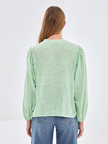 LC WAIKIKI - بلوزة بوبلين كبيرة الحجم بياقة مربوطة للنساء من ال سي وايكيكي