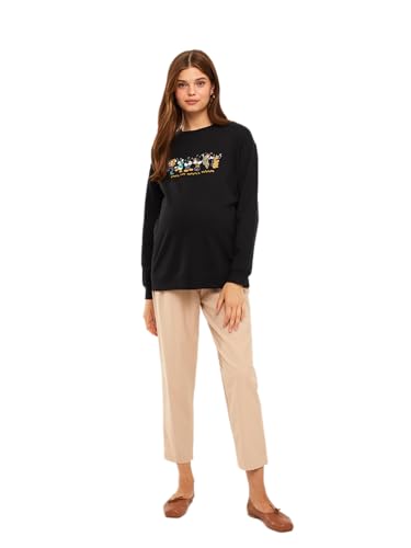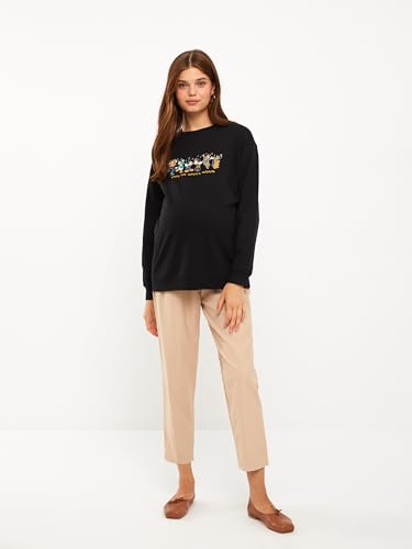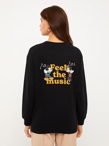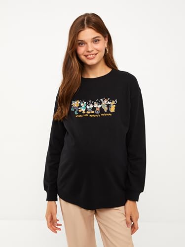 LC WAIKIKI - سويت شيرت للحمل برقبة دائرية ضيقة وأكمام طويلة وطبعة ميكي ماوس للنساء من LC وايكيكي