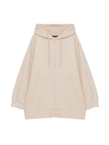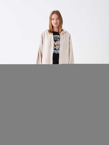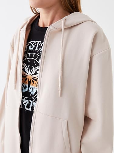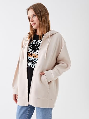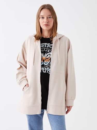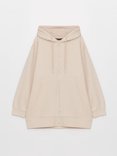 LC WAIKIKI - LC واكيكي سويت شيرت سادة بغطاء للرأس وسوستة سميكة مقاس كبير للنساء