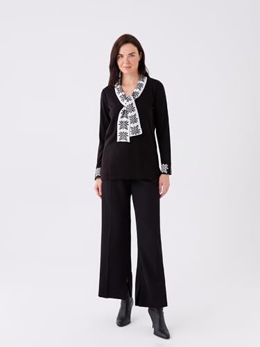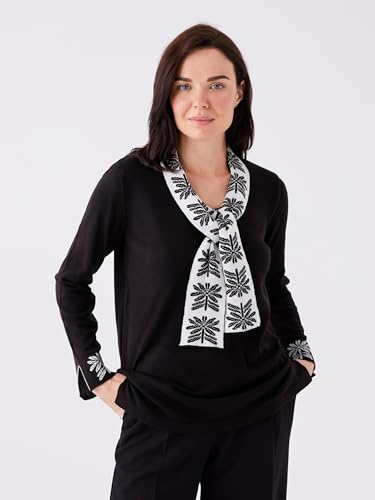 LC WAIKIKI - سويتر صوفي منسوج ومنقوش بأكمام طويلة ورقبة دائرية ضيقة للنساء من ال سي وايكيكي