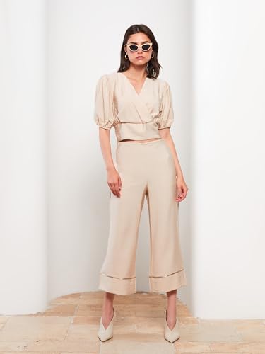 LC WAIKIKI - بنطلون كابري مستقيم بقصة عادية وخصر عالي للنساء من ال سي وايكيكي
